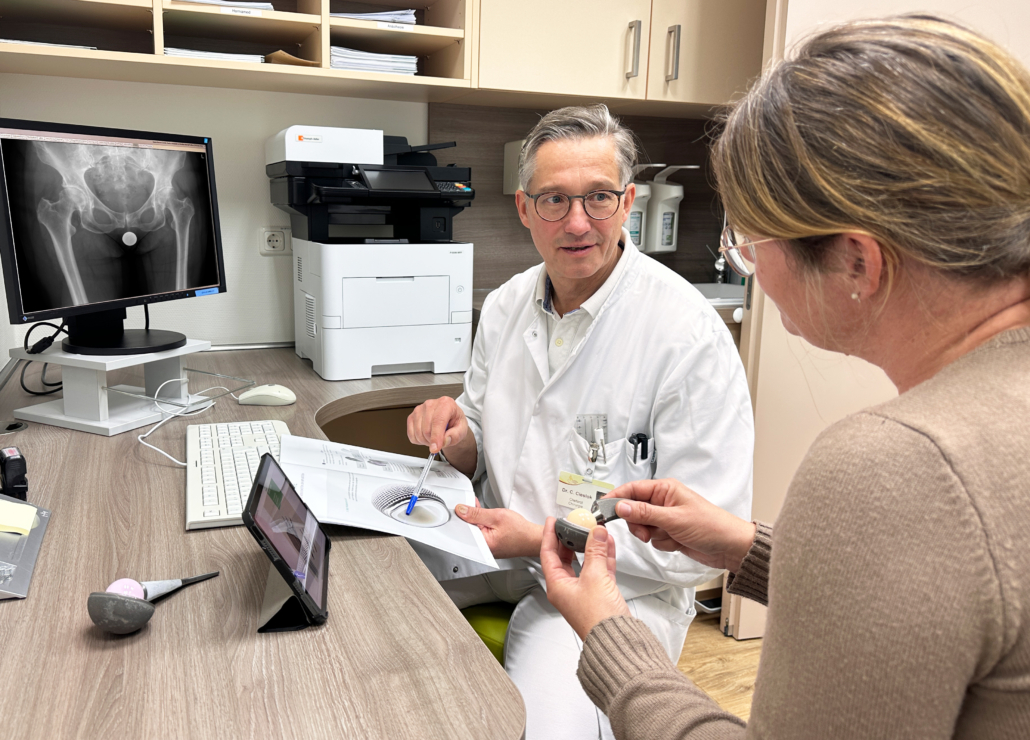 Dr. Cieslok setzt, wann immer es möglich und sinnvoll ist, auf minimalinvasive Eingriffe: „Gerade der direkte vordere Zugang schont besonders die für das Gehen mit der Hüftprothese wichtige Muskulatur an der seitlichen Hüfte.“ Der positive Effekt ist eine raschere Steh- und Gehfähigkeit nach der Operation. So beginnt die Mobilisation nun häufig bereits am OP-Tag – und am ersten Tag nach der OP kann sich der Patient wieder hinsetzen. Bisher habe man mit Patienten aller Altersgruppen gute Erfahrungen gemacht. „Ein verbreiteter Irrglaube ist, dass Operationsmethoden wie der vordere Zugang nur für junge und aktive Patienten geeignet ist. Tatsächlich profitieren auch ältere oder weniger mobile Menschen enorm von diesem Verfahren“, klärt Cieslok auf. Die reduzierte Belastung auf den Körper und die raschere Wiederherstellung machen es möglich, dass Patienten schneller in ihren Alltag zurückkehren können – sei es bei Spaziergängen, Hobbys oder einfach bei der Bewältigung alltäglicher Aufgaben.